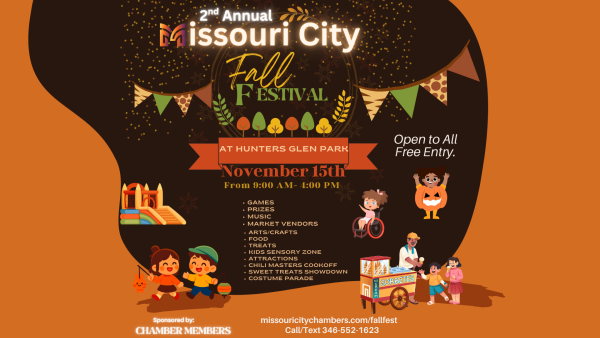 Join the Missouri City Chamber of Commerce as we host our 2nd Annual Fall Festival — a full-day, family-friendly community celebration on Saturday, November 15, 2025, at Hunters Glen Park.
