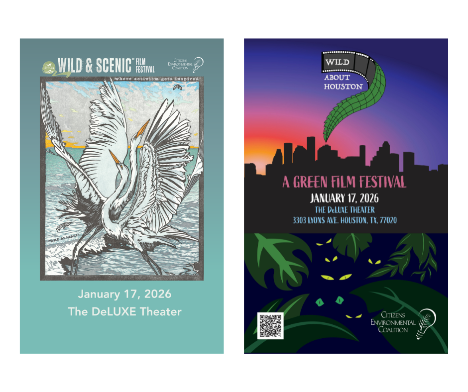On Saturday, January 17, CEC is hosting a celebration of cinema, environmental activism, and community that brings together powerful stories that inspire action for our planet. This year’s festival unites the best of Houston’s voices with global perspectives. Be moved by inspiring films from the nationally acclaimed Wild and Scenic Film Festival On Tour and our homegrown Wild About Houston film festival, and then join us for a post-screening panel discussion with local environmental experts and advocates.